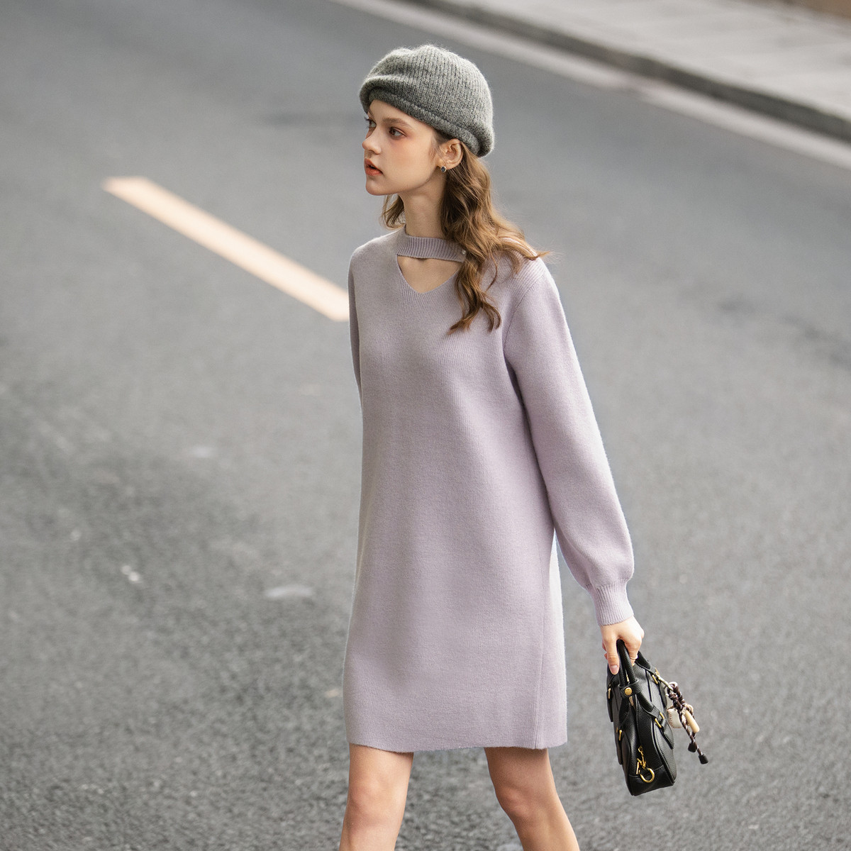 唐狮2025秋冬季女长袖连衣裙短裙红色毛衣裙温柔风气质小心机设计