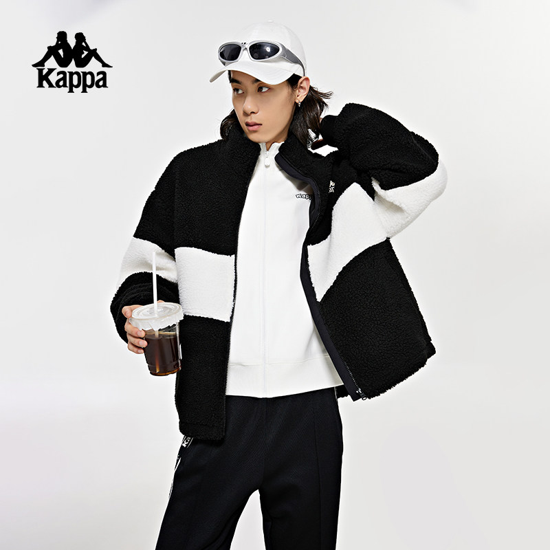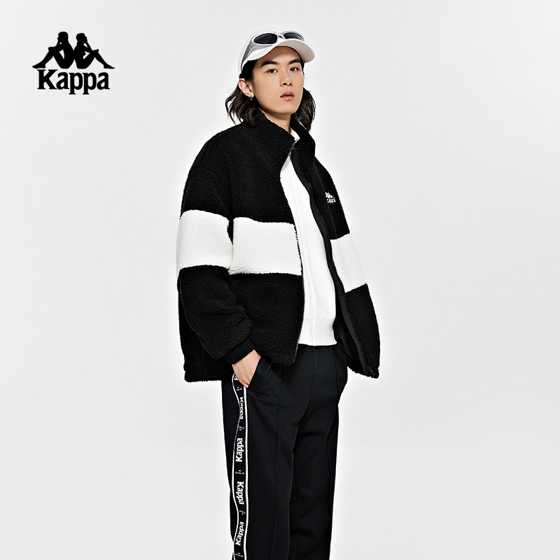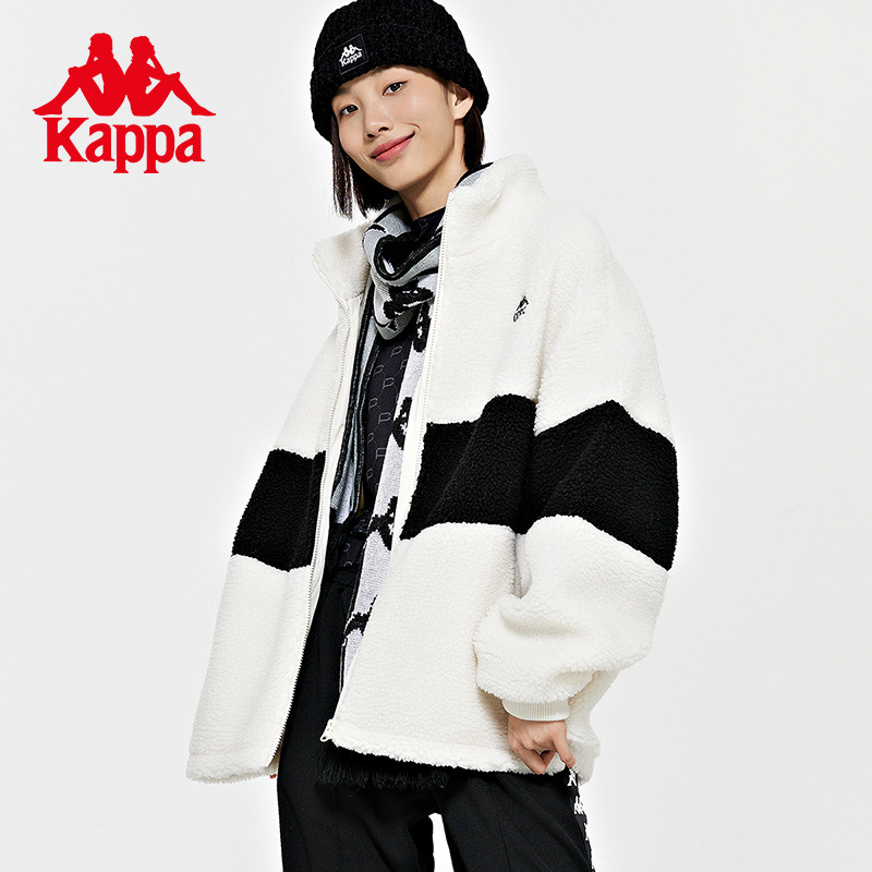 Kappa卡帕羊羔绒外套女拼色夹克男立领防寒服上衣K0DZ2JJ91D