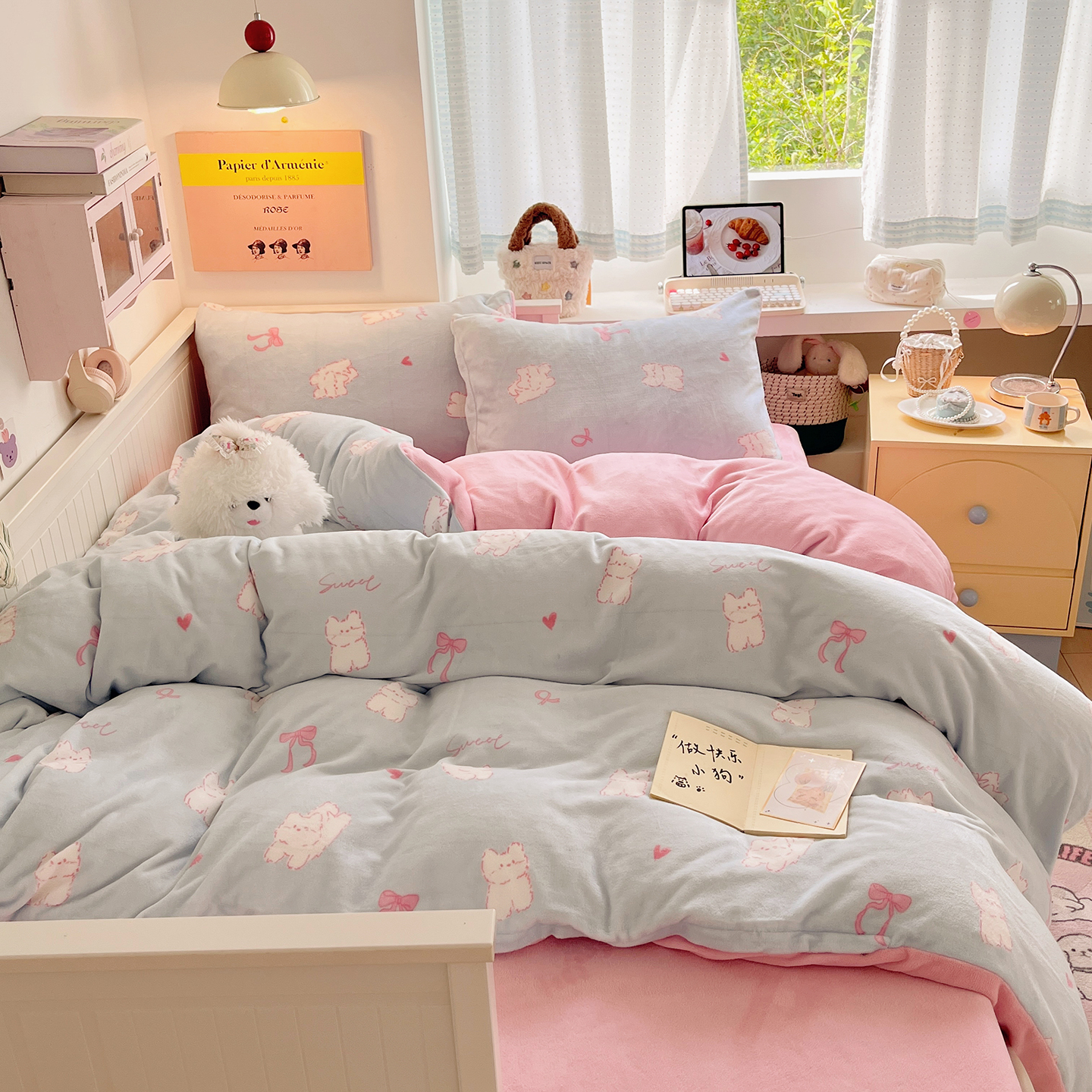【宅姿势】秋冬单双人床品加绒四件套可爱TZ卡通猫咪床单被套加厚