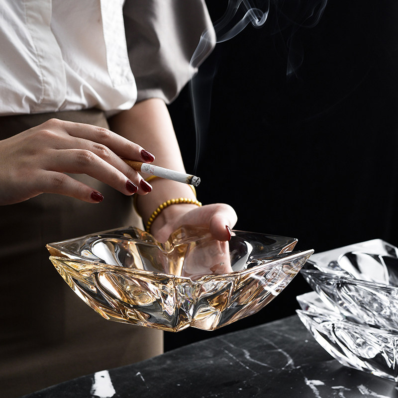 欧式轻奢高档大号水晶玻璃烟灰缸