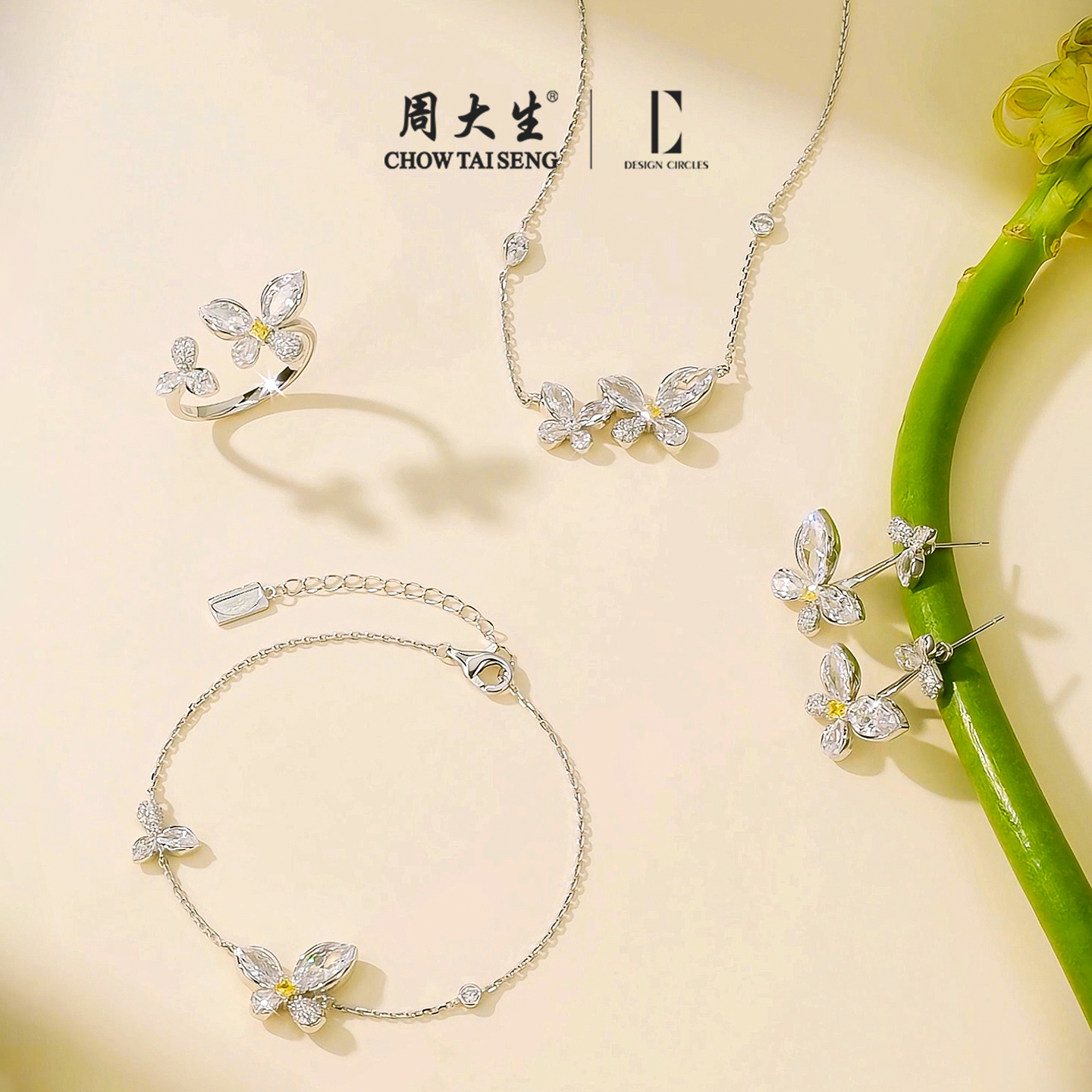 周大生*DC鸢尾蝶梦项链纯银S925女款蝴蝶轻奢高级锁骨链生日礼物