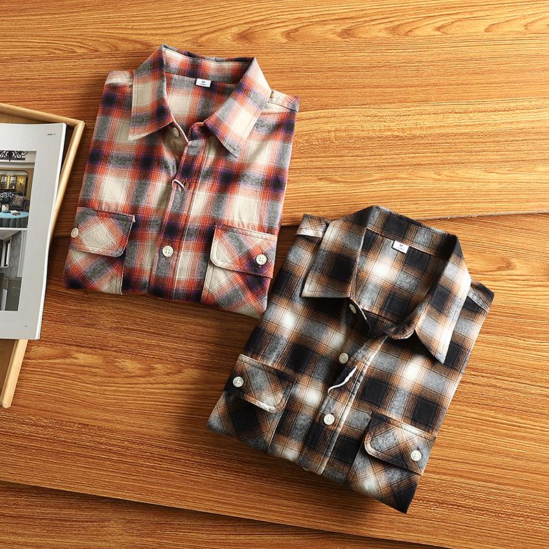 美式复古格子衬衫男宽松春秋季新款纯棉小外套高级感工装长袖衬衣