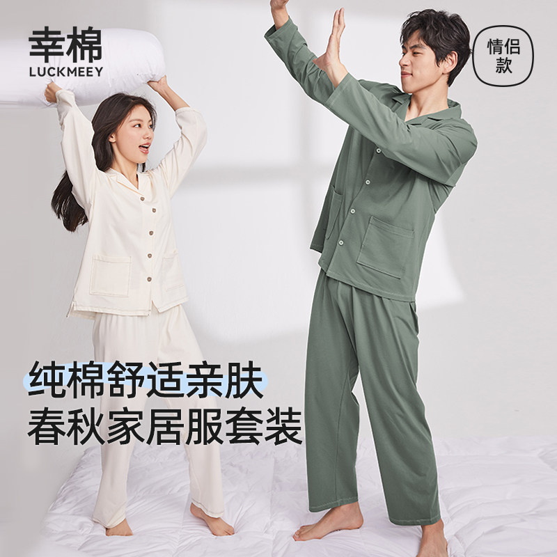 幸棉睡衣女纯棉家居服套装情侣春秋款男长袖居家休闲家居服两件套
