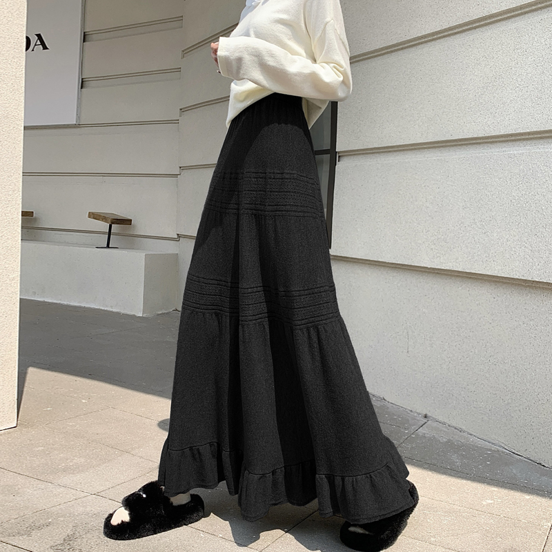 实拍针织半身裙秋冬季加厚遮胯显瘦大摆长款高腰A字伞裙毛线裙子