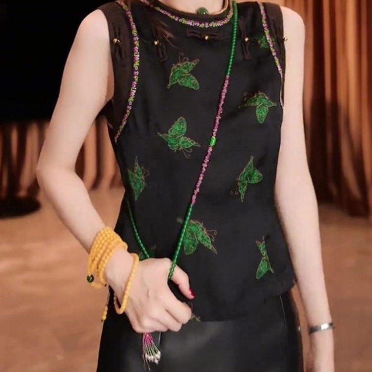 轻奢高级感新中式复古改良版唐装无袖背心马甲女秋季修身干练上衣