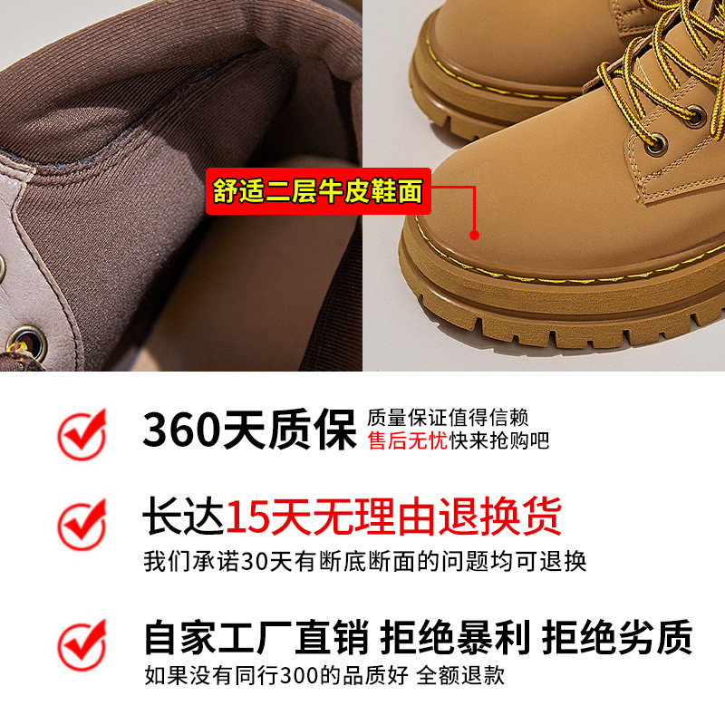 情侣款真皮大黄靴2025新款秋冬季女鞋英伦风短靴女厚底马丁靴鞋