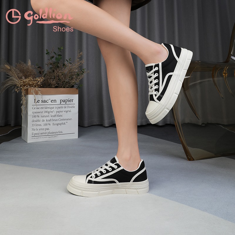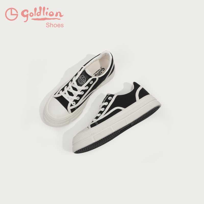 金利来女鞋 时尚厚底帆布鞋女圆头系带休闲鞋百搭板鞋运动鞋女鞋