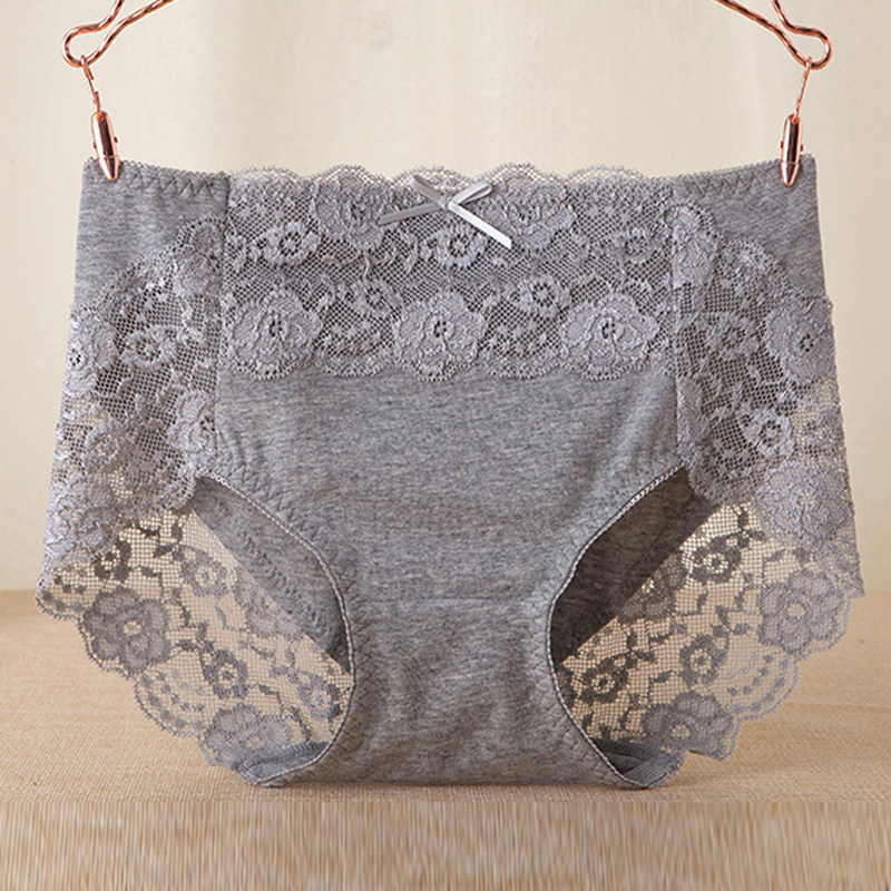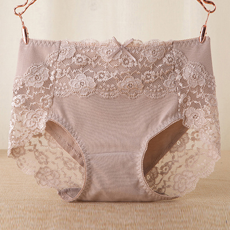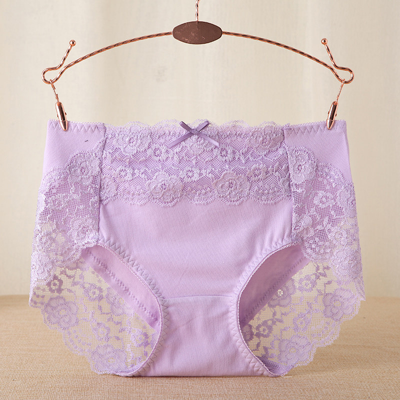 出口日本原单外贸女士中高腰内裤纯棉100%全棉质性感蕾丝无痕收腹