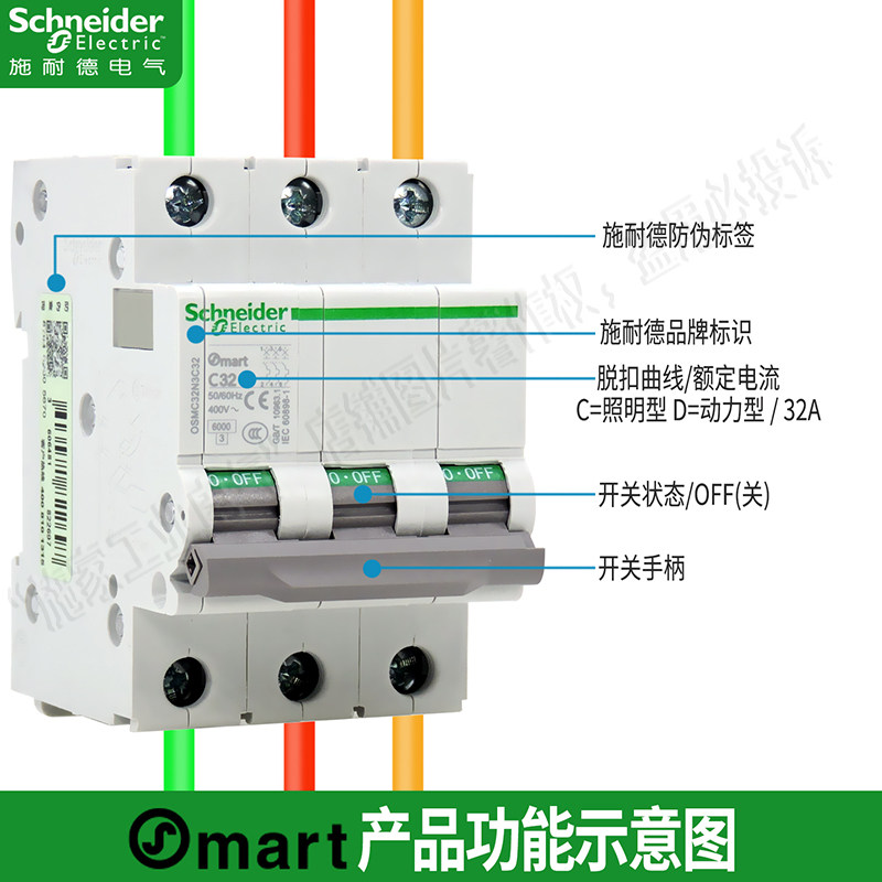 正品施耐德mart小型断路器Osmart空气开关OSMC32N微断3P C20 D50A