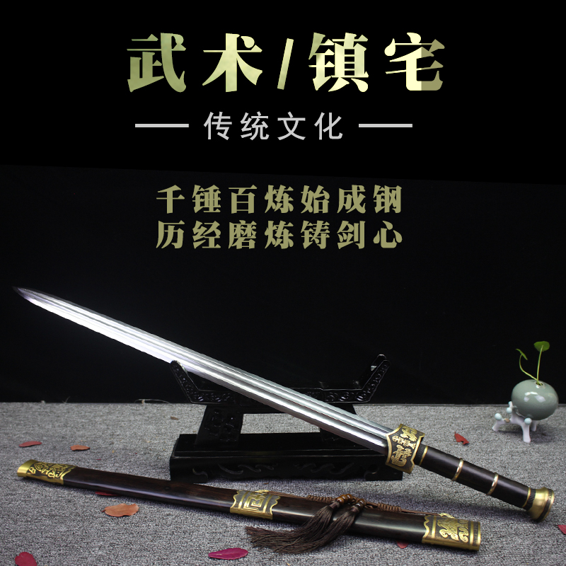 赵云青钢刀剑花纹钢高锰手工一体汉宝剑防身兵器武术龙泉市未开刃