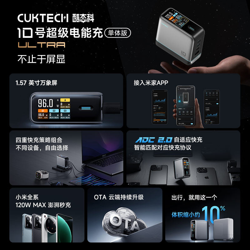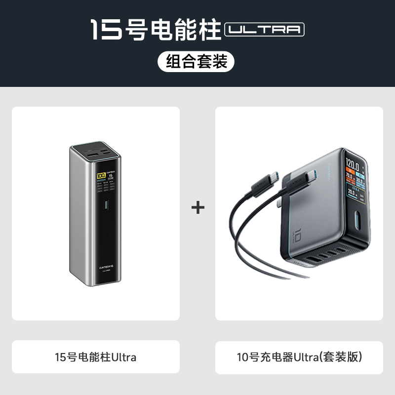 CUKTECH酷态科15号Ultra电能柱移动电源电芯20000毫安时充电宝多口210W快充PD百补套装