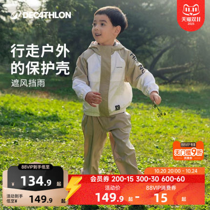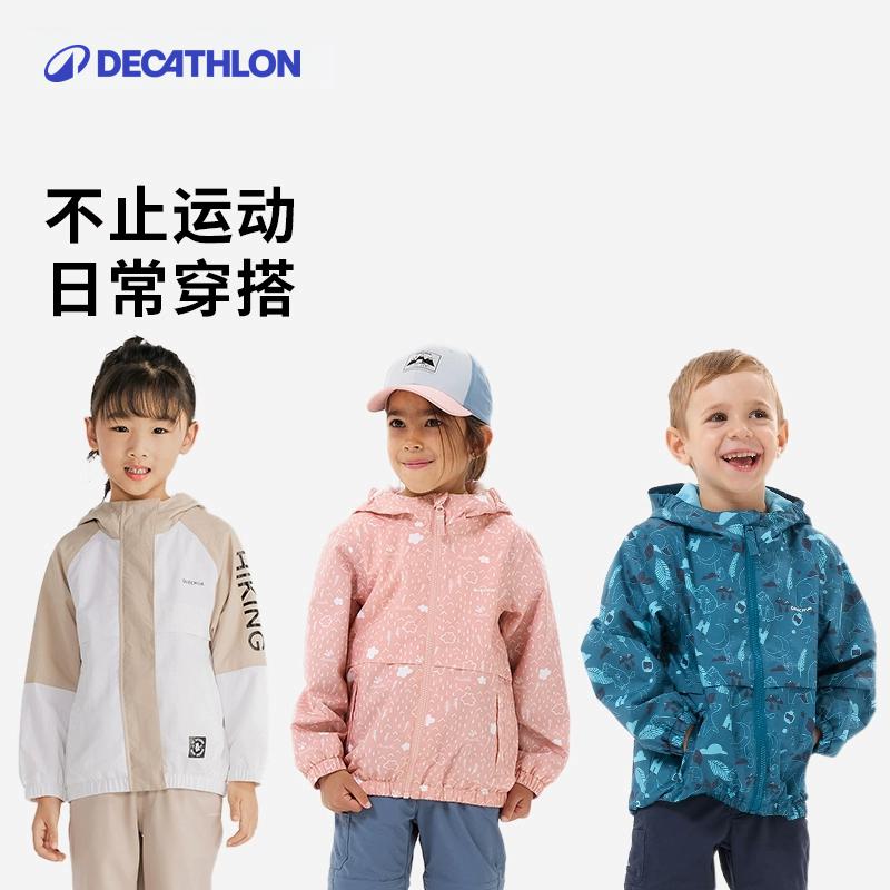 迪卡侬儿童防水运动外套男女童春秋童装透气休闲印花上衣夹克KIDC