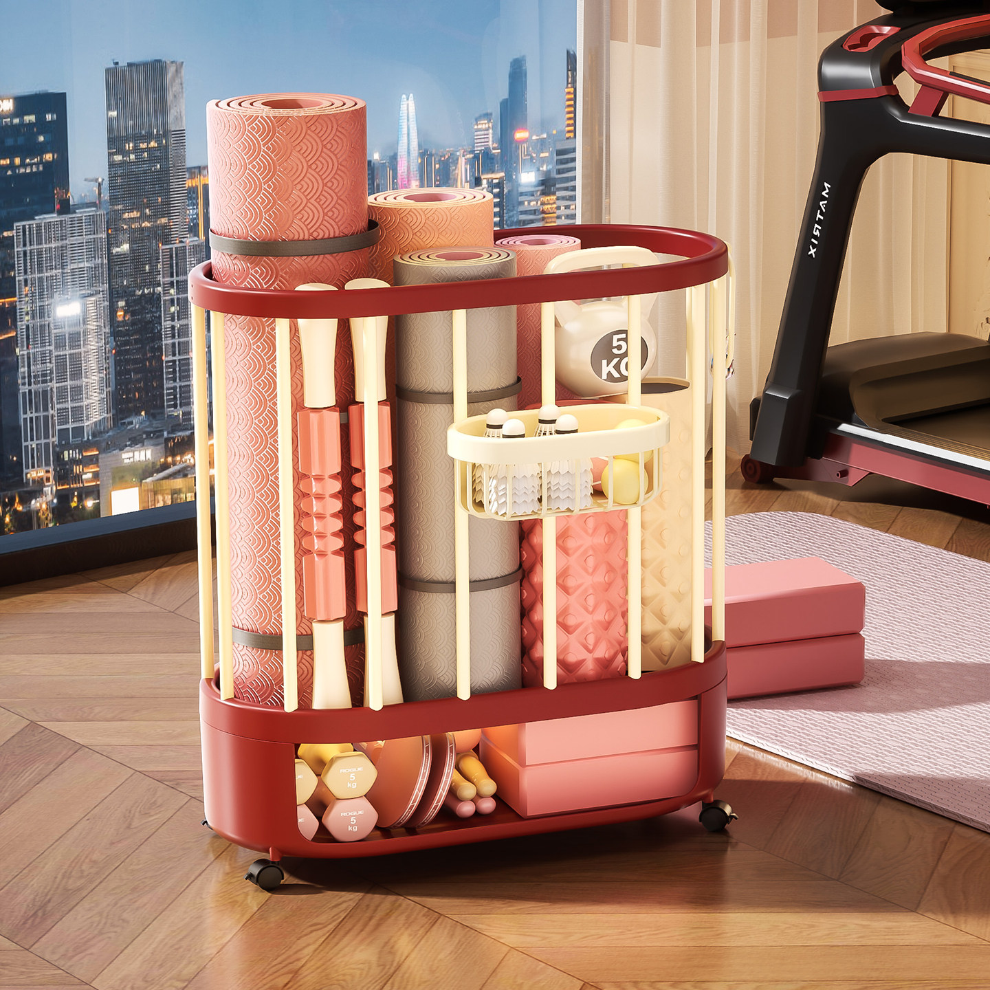 健身器材收纳神器体育用品羽毛球拍篮球收纳架大容量瑜伽垫收纳筐