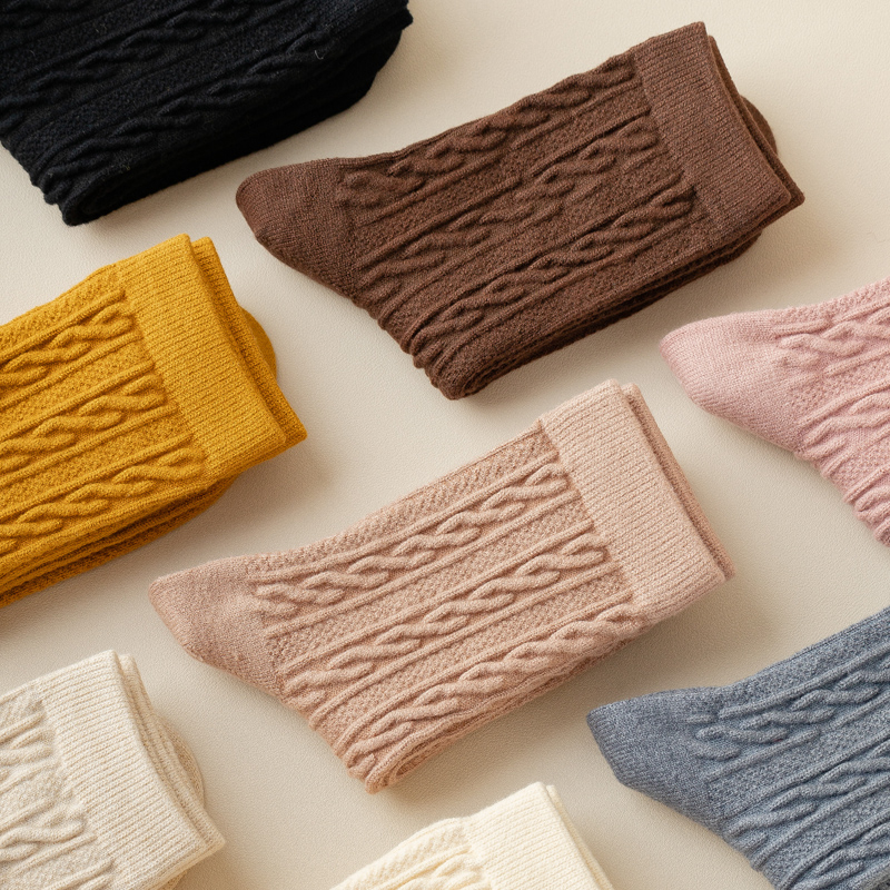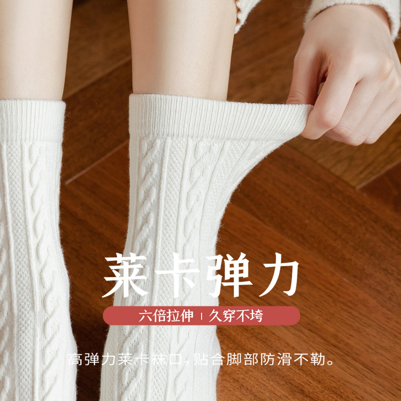 羊毛袜子女秋冬季中筒袜加厚加绒款长筒棉袜长袜冬天保暖羊绒高筒