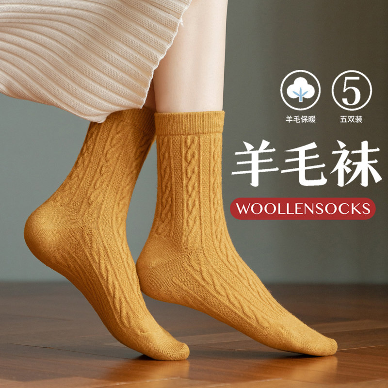 羊毛袜子女秋冬季中筒袜羊绒