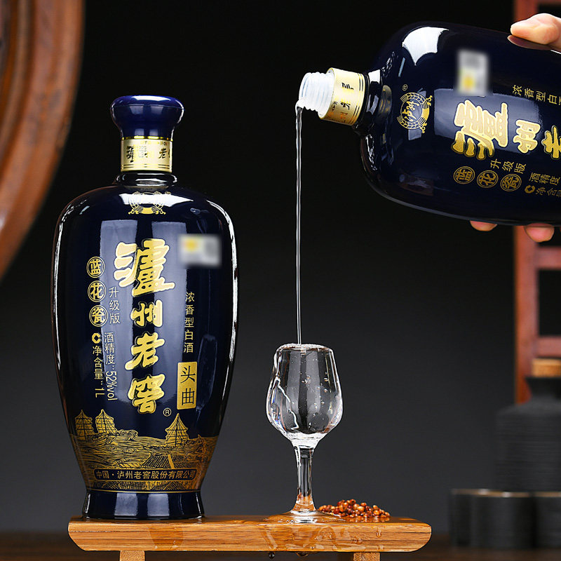 泸州老窖蓝花瓷头曲公斤装52度浓香型白酒纯粮食酒1L*2瓶