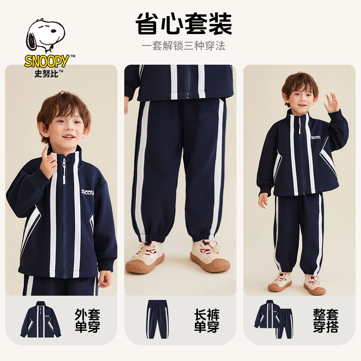 史努比男童运动套装春秋2025新款儿童时髦帅气秋装外套长裤两件套