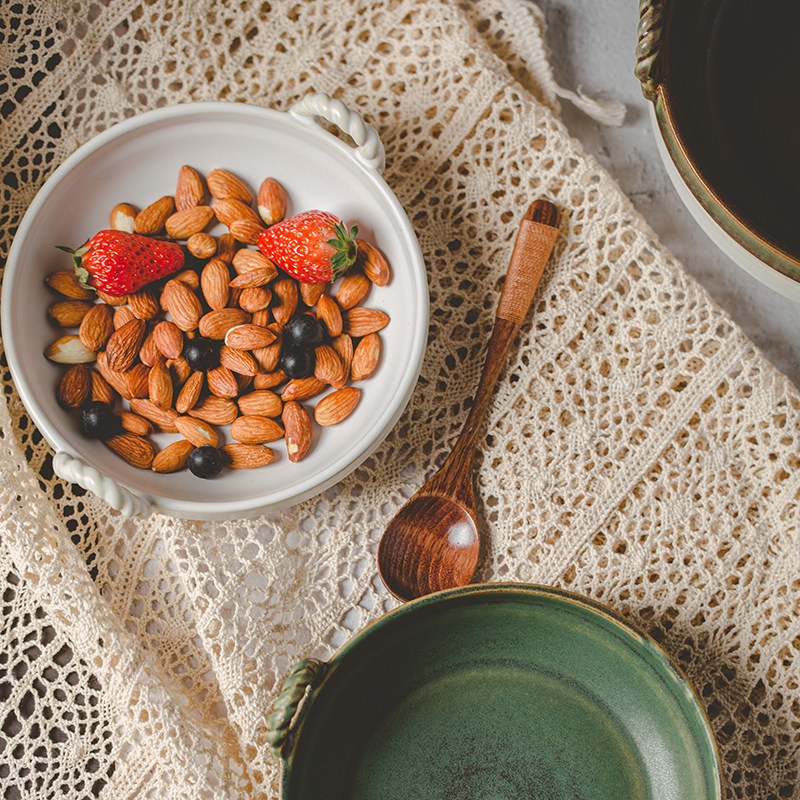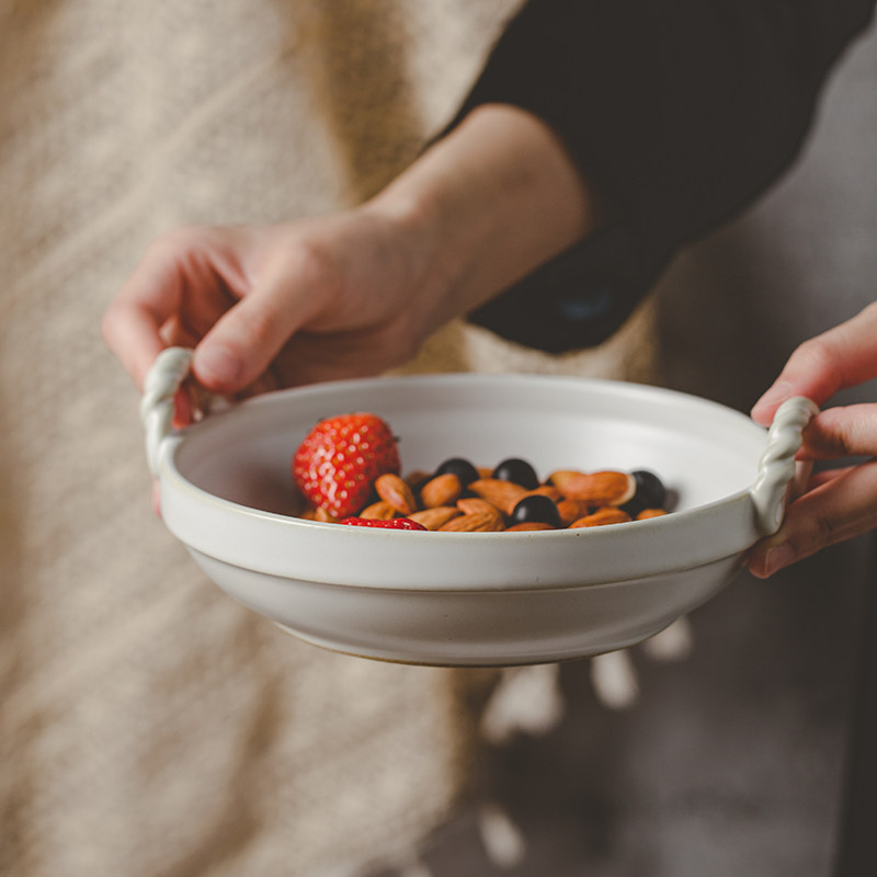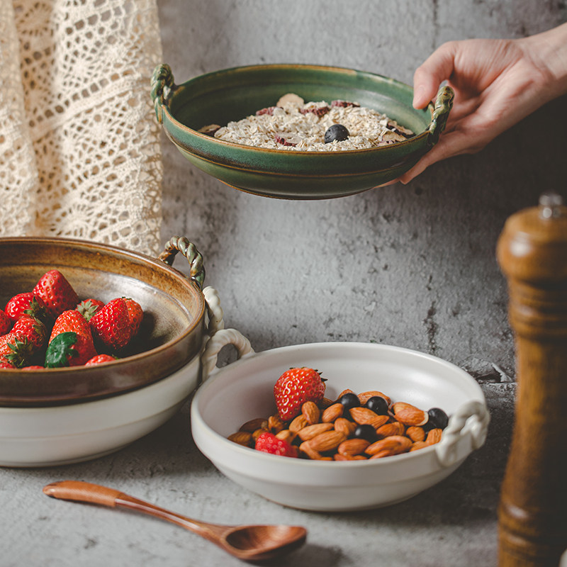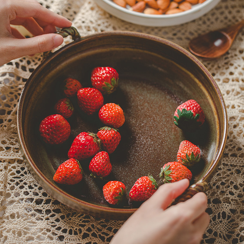 粗陶双耳盘日式复古陶瓷菜盘家用