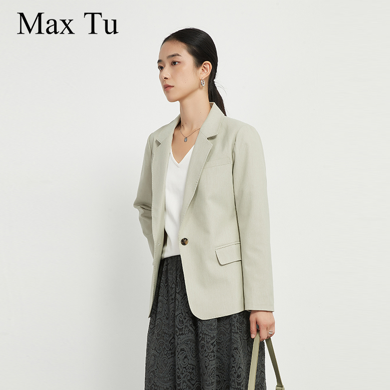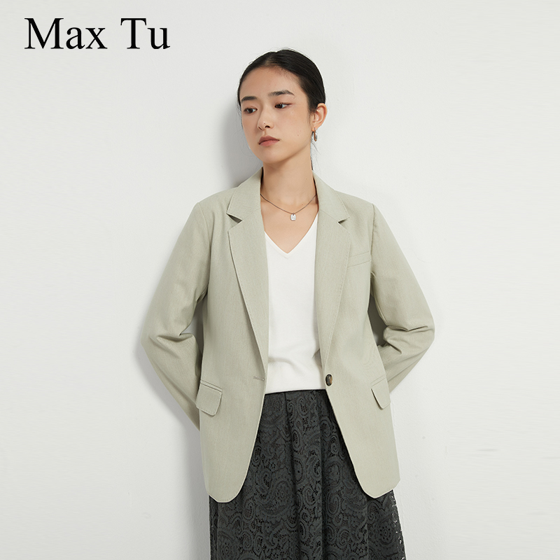 Max Tu女装2025春秋新款宽松大码收腰显瘦休闲时尚羊毛混纺小西装