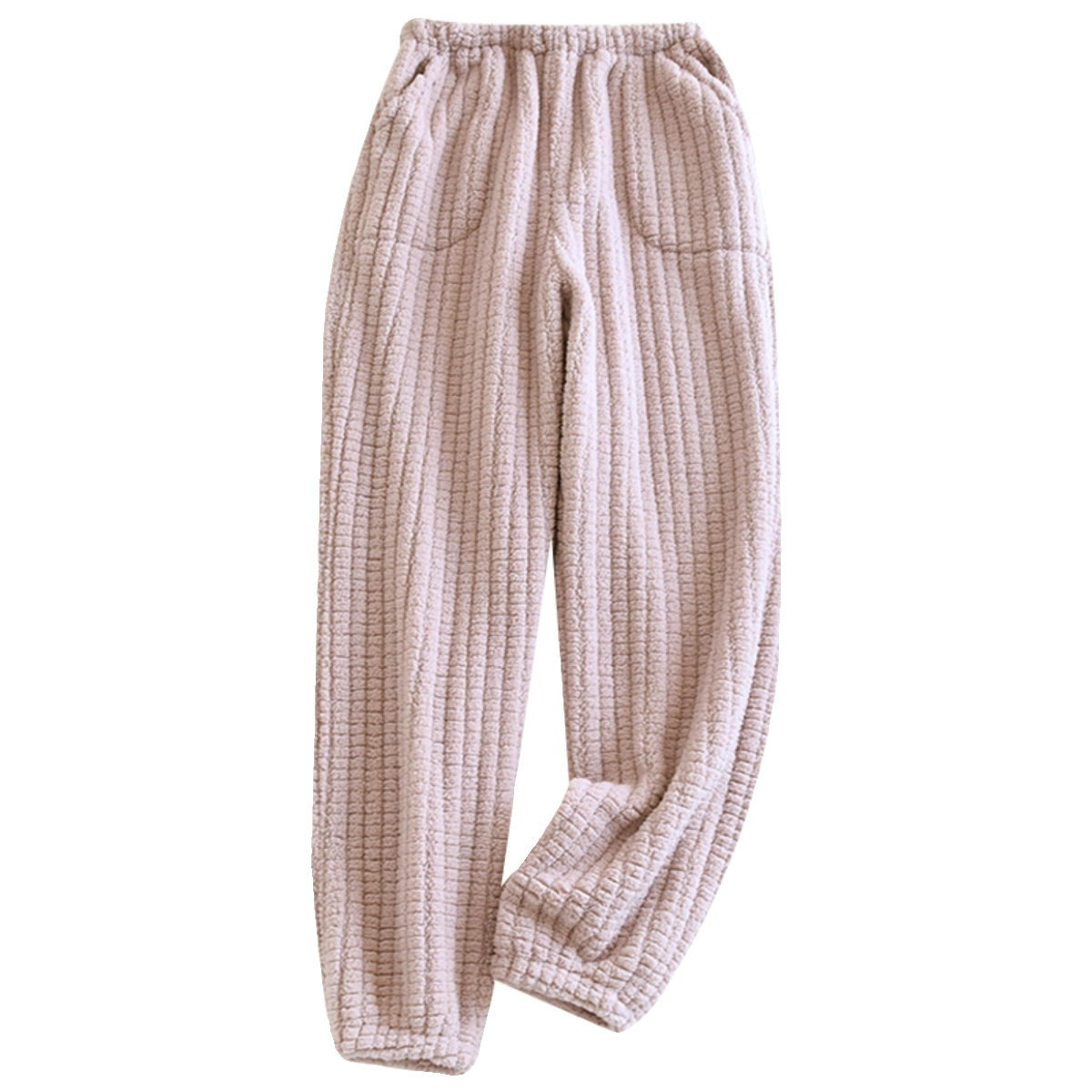 情侣睡裤女男加厚款法兰绒保暖珊瑚绒简约休闲纯色收口家居裤长裤