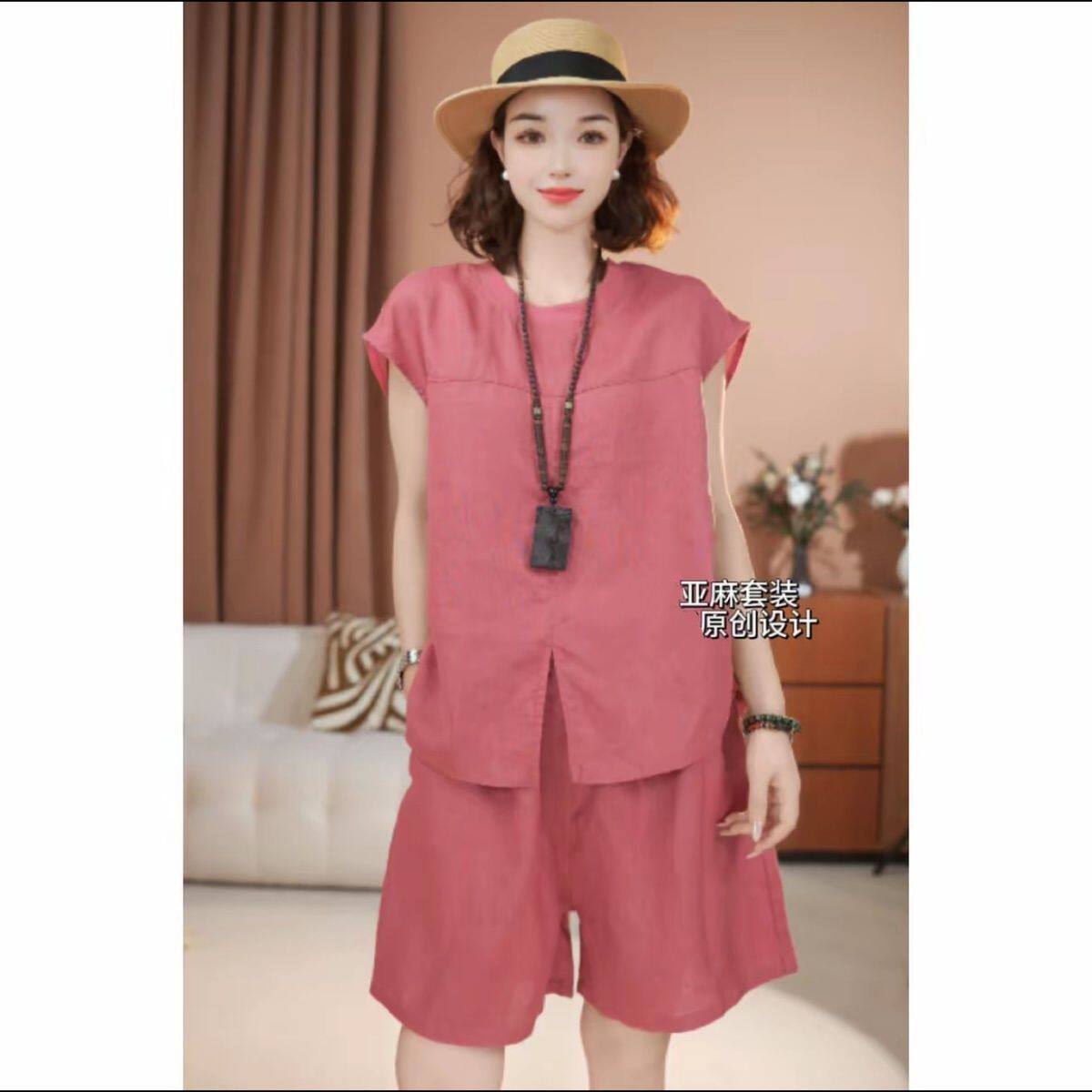 时尚亚麻套装女2025夏季新款减龄