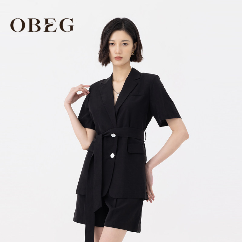 OBEG欧碧倩亚麻环保小西装夏莱赛尔收腰西装外套104044