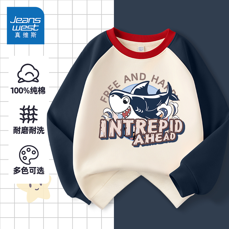 真维斯童装男童卫衣春秋薄款撞色插肩休闲上衣帅气儿童打底衫秋装