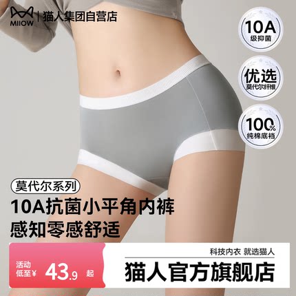 猫人莫代尔内裤女26新款纯棉10A抗菌底裆全包臀无痕裸感透气平角