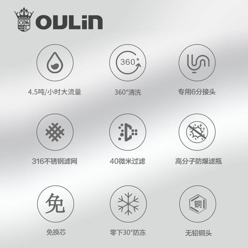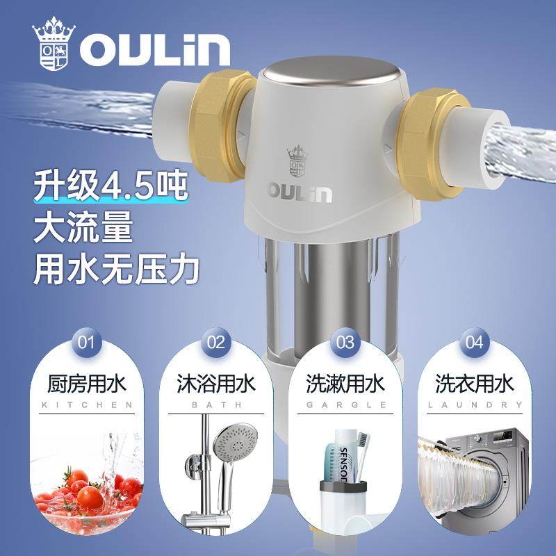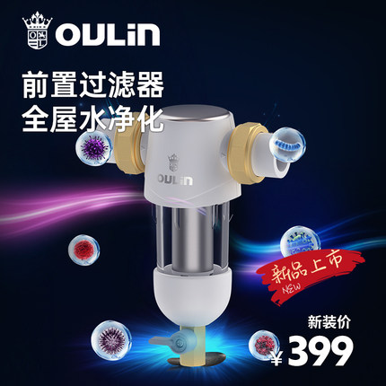 欧琳自来水前置过滤器防堵家用双网反冲洗净水器全屋中央滤水器