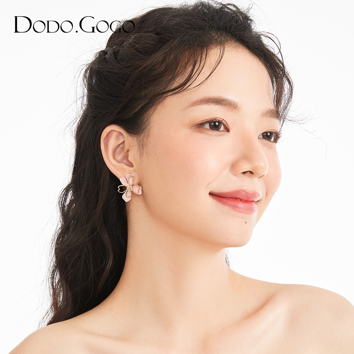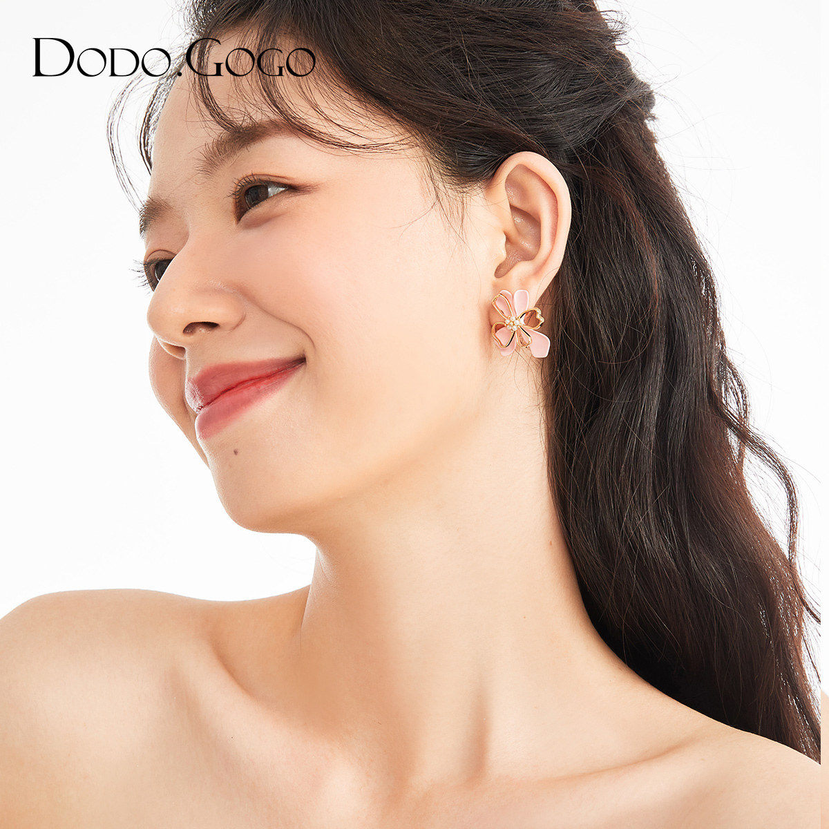 dodogogo粉色花朵耳环女轻奢花瓣仿珍珠耳钉甜美时尚2025新款耳饰