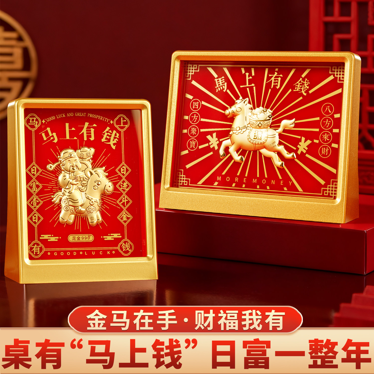 马上有钱摆件马年吉祥物创意礼品2026生肖马本命年高级感发财金马