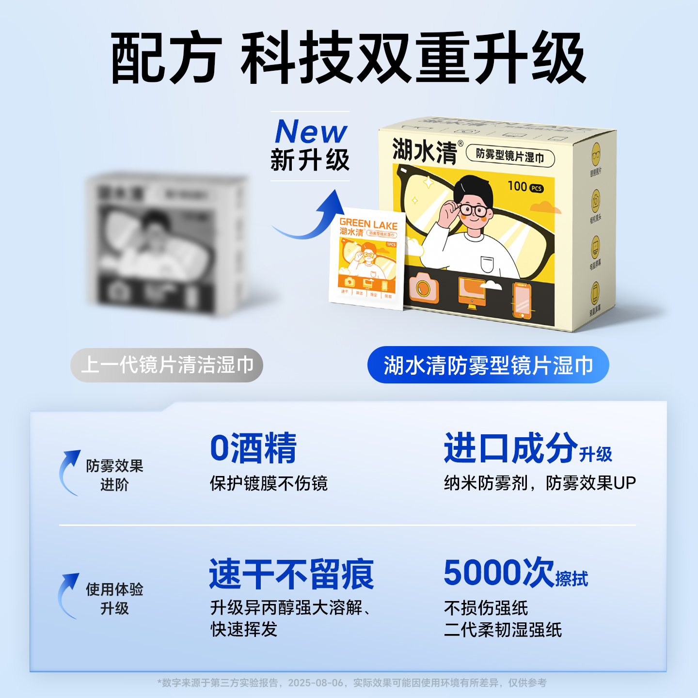 湖水清眼镜清洁湿巾一次性防雾眼镜布专用擦拭镜片纸不伤镜头屏幕