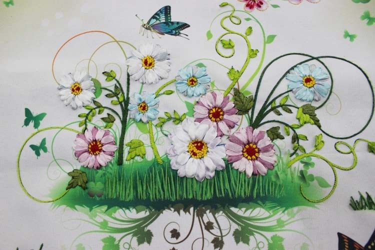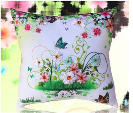 正品包邮新款丝带绣花抱枕靠垫车枕前蝴蝶飞3D立体印花彩印十字绣