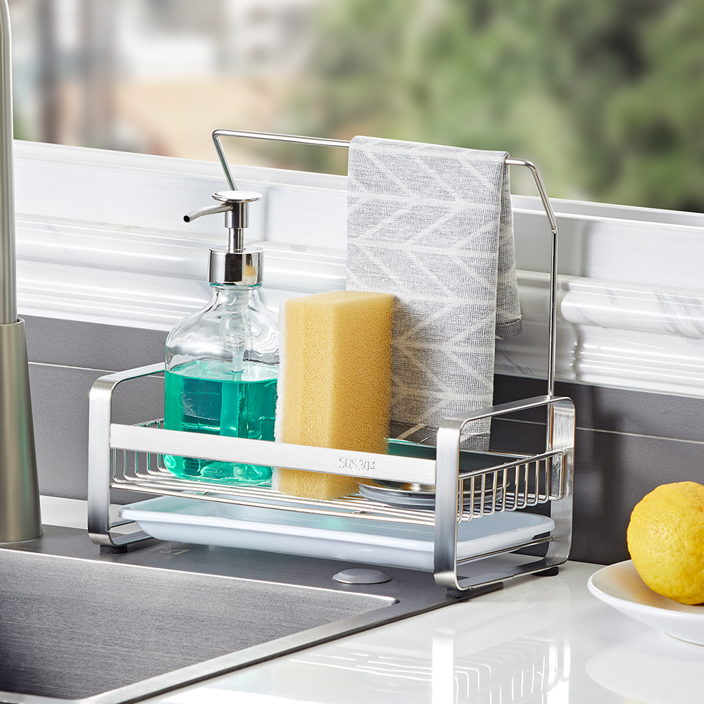 304不锈钢抹布架厨房专用水槽沥水篮洗碗布海绵多功能收纳置物架