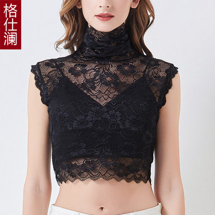格仕澜蕾丝打底衫2021秋冬高领假领子堆堆领衬衫毛衣内搭洋气小衫