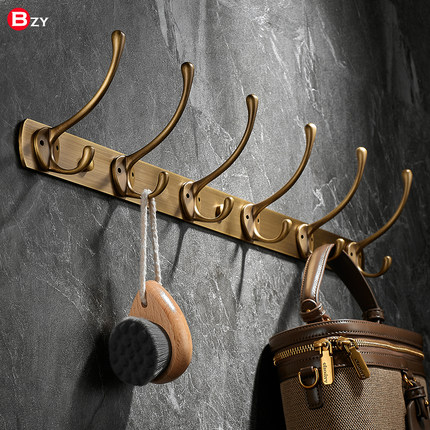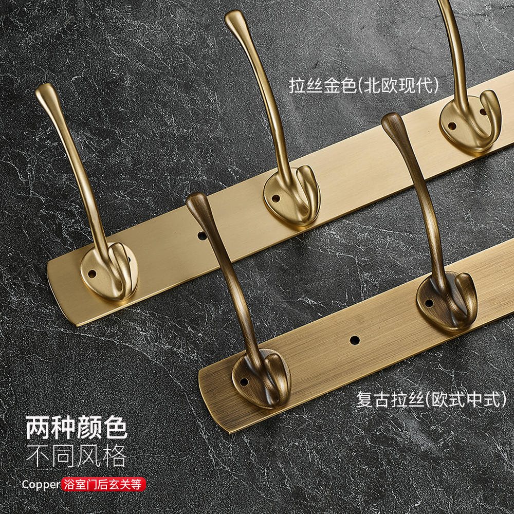 欧式复古全铜衣帽钩玄关鞋柜挂钩浴室挂衣钩卧室门后墙壁免钉排钩