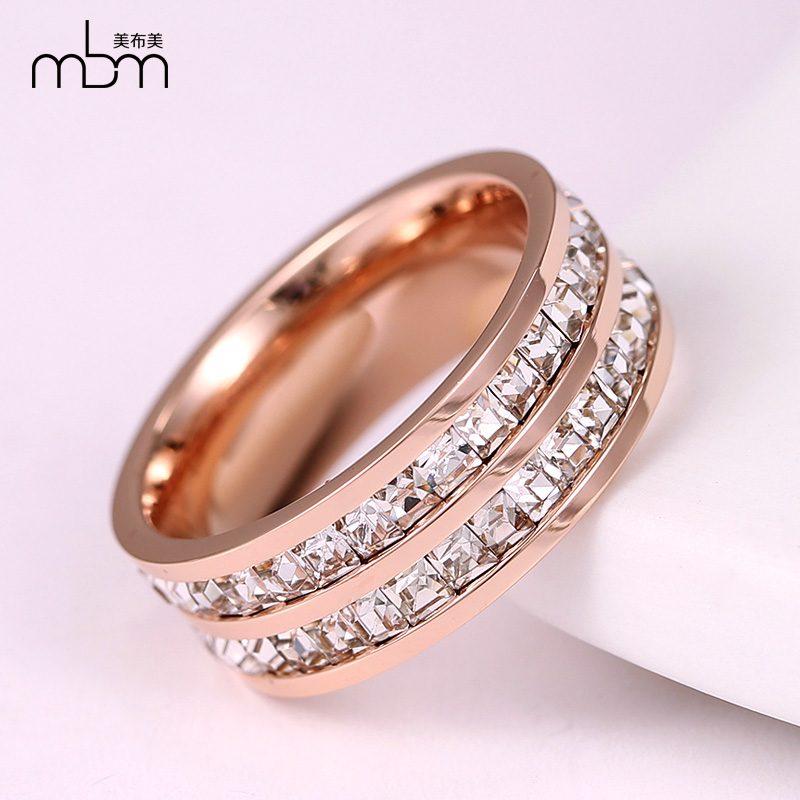 送女友镀18k金双排满钻韩版时尚食指情侣戒指男女首饰大码不掉色