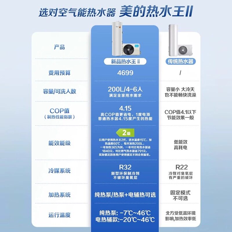 美的空气能热水器空气源热泵家用200L节能省电热水王二代