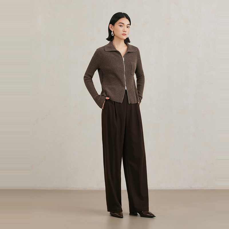 NEELLY纳俪商场同款冬季新款绵羊毛肌理感修身针织开衫女毛衣外套
