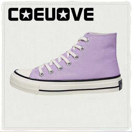 COEUOVE浅紫复古百搭高帮帆布鞋
