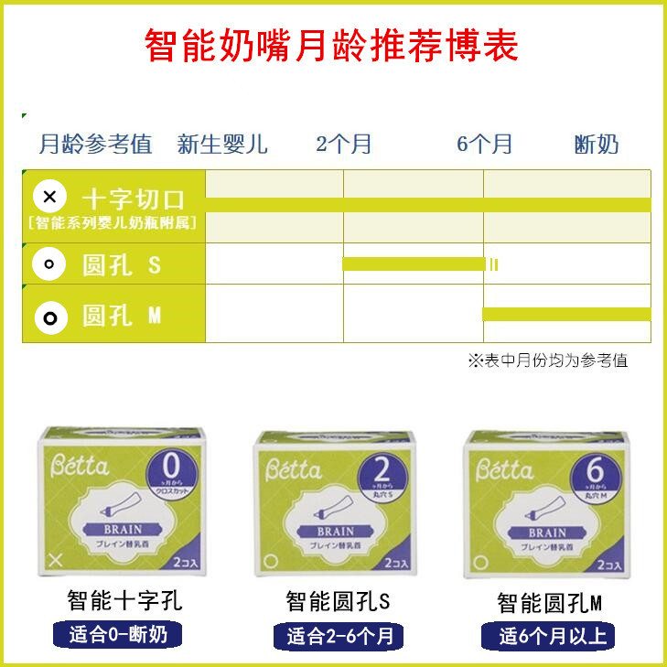 日本进口Betta/蓓特奶嘴奶瓶宝石智慧系列圆孔十字X孔硅胶标准宽