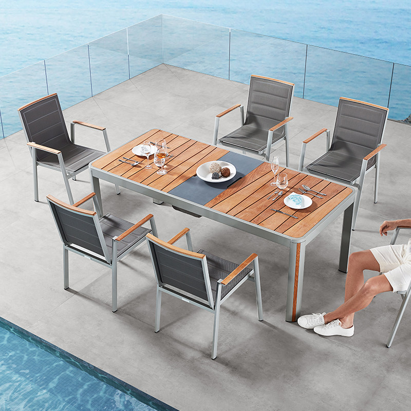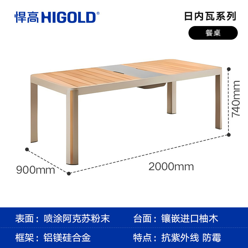 悍高日内瓦系列户外桌椅进口柚木原创轻奢铝合金框防水布防晒