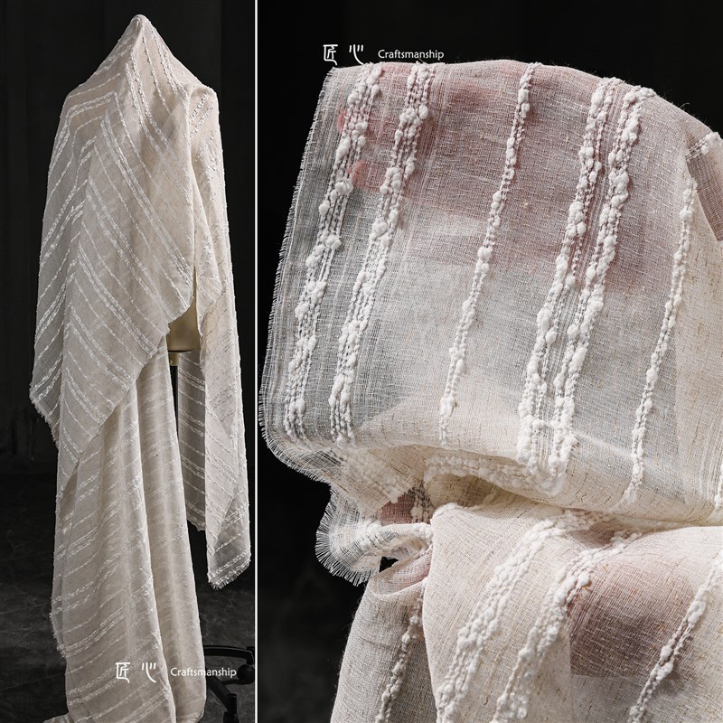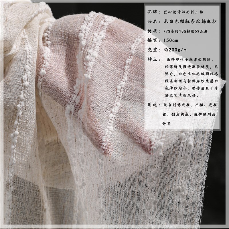 本麻白点条纹轻薄棉麻肌理麻纱布 diy家居布艺窗帘裙服装设计面料