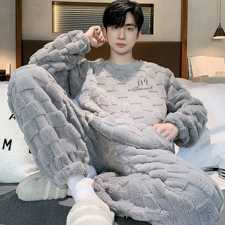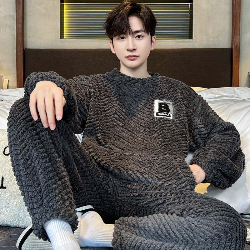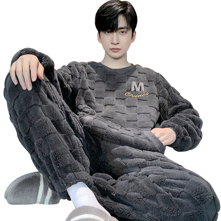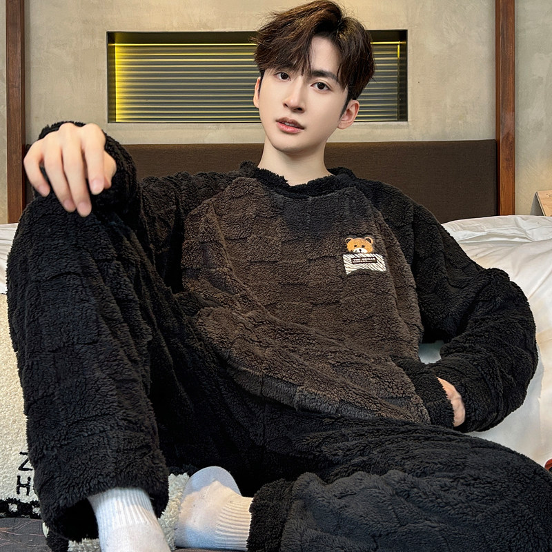 睡衣男士春秋冬季2025新款加绒加厚珊瑚绒青少年男生家居服套装