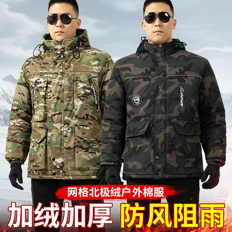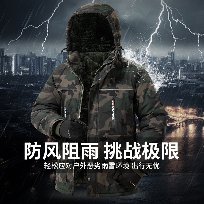 迷彩棉袄厚军大衣男冬季新款防水加绒劳保棉服加厚保暖冷库防寒服