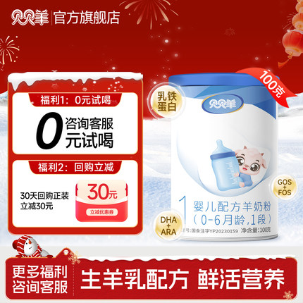 贝贝羊羊奶粉1段0-6月100g试用装乳铁蛋白配方营养新国标官方正品