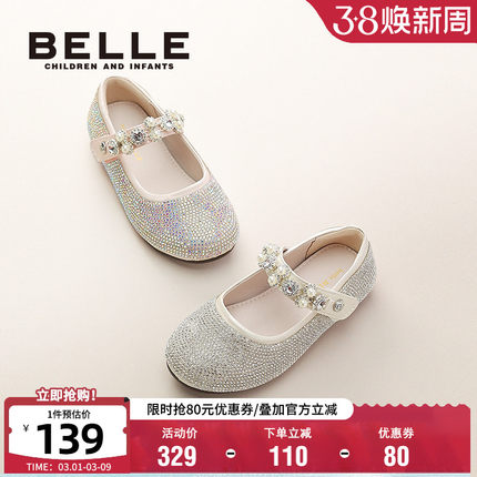百丽童鞋秋季女童水晶鞋闪亮水钻公主鞋小女孩时尚百搭软底演出鞋