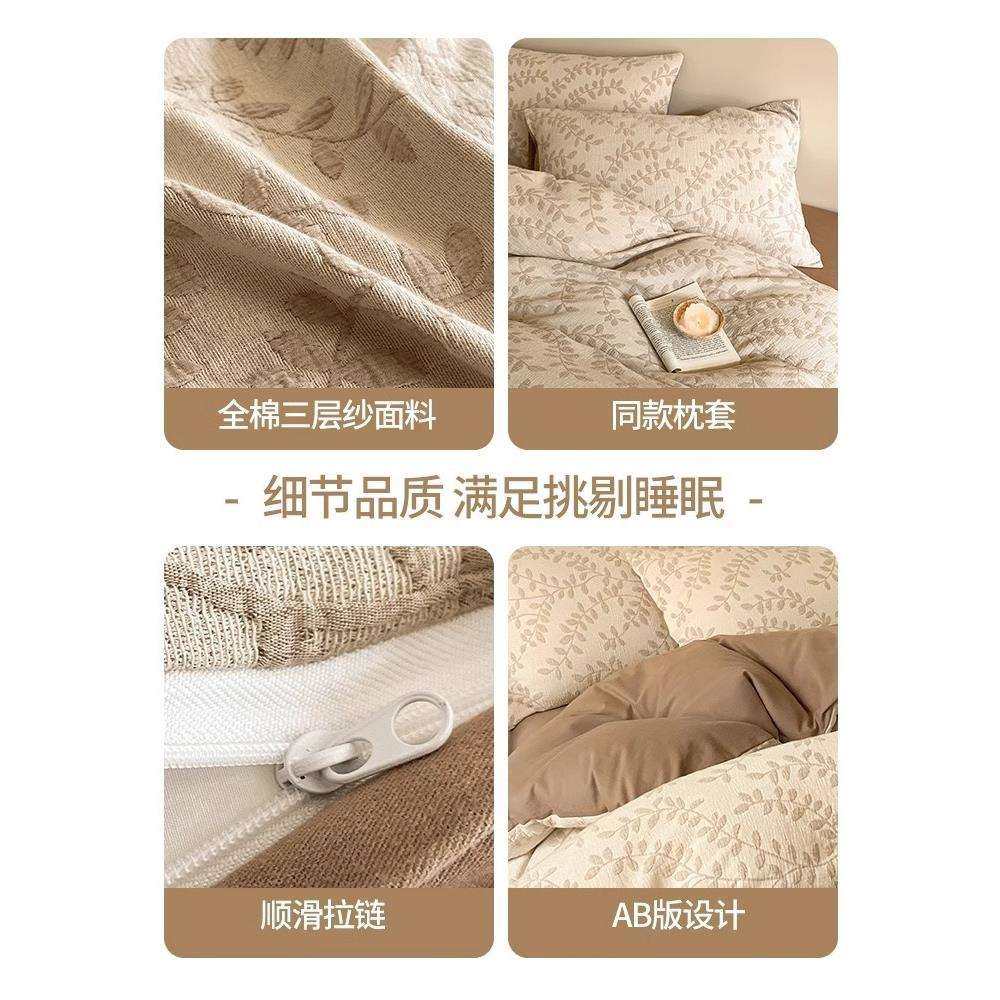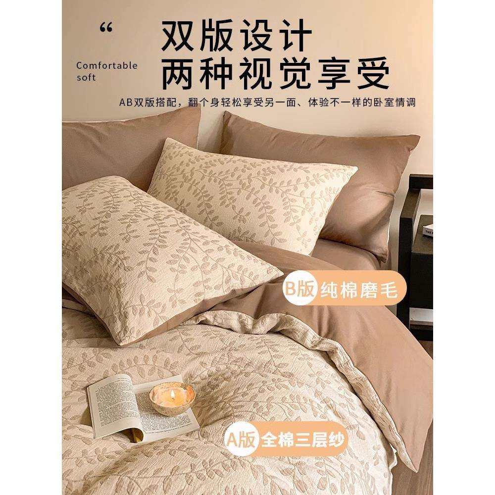 A类纯棉三层纱床上四件套100全棉加厚磨毛秋冬床品被套床单三件套