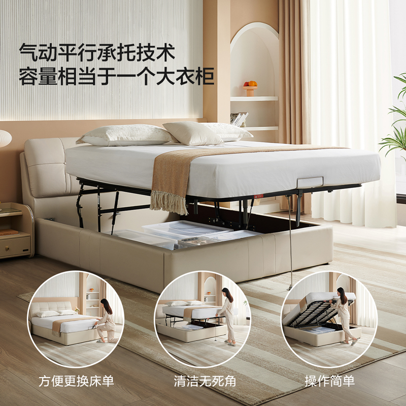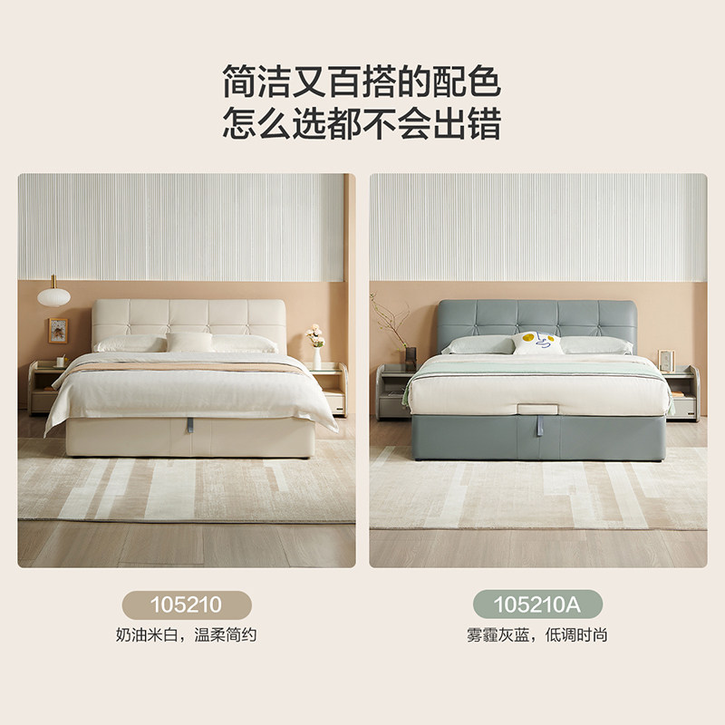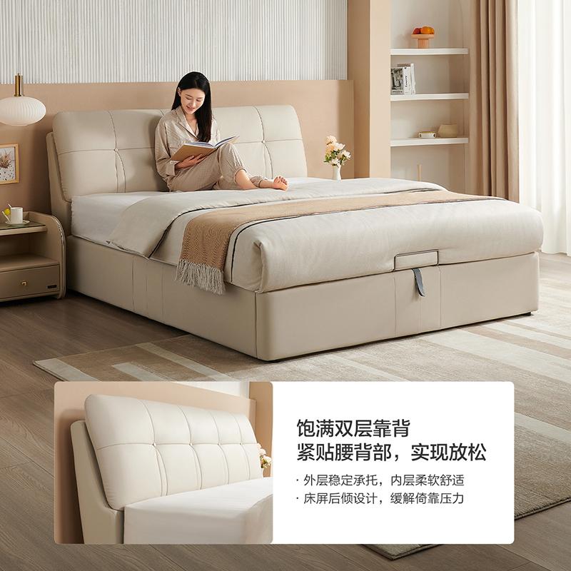 全友家居真皮床现代简约主卧室家具高端大气储物婚床1米8双人床