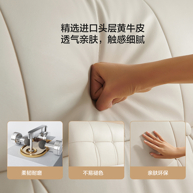 全友家居高箱双人床头层牛皮